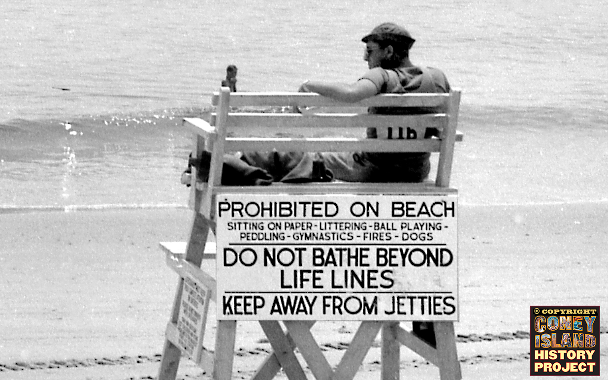 I can't remember when they stopped installing them, maybe around 1960? There was talk that they gave swimmers a false sense of security and that inexperienced swimmers would swim out too far to get to the third one. Safety ropes were part of the Coney Island beach for more than a century, but the barrels seemed to have appeared sometime in the 1950s. Most likely they were discontinued to save money or maybe because of vandalism. If anyone knows the reason, please let us know.