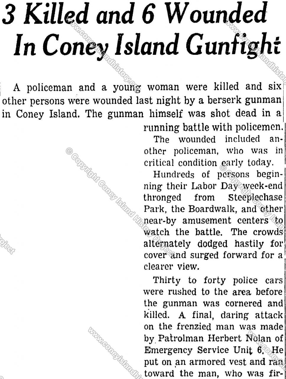 The shooting took place in 1962. Two policemen died and six others were shot. It was a turning point for Coney's reputation. I remember it well. The incident is mentioned in the book: Coney Island Lost and Found. Here is a partial clipping: