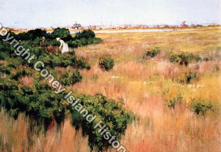 No attachment came in with your email but I know the painting and have used it in my presentations. The view is looking east and the women are standing at Coney Hook at the border of Sea Gate (roughly where Coney Creek Park is located).