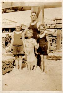 The date of this photo is circa 1921-22 and the building in the background is Bushman Baths, located at West 15th and the Boardwalk (which is under construction in the photo, completed in 1923.) Bushman Baths burned in 1973. Note the spelling change in the name (they dropped the "c" somewhere along the way.)