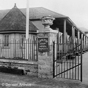 Carlton Court was located on West 35th Street between Surf Avenue and the Boardwalk. The resort was owned and operated by Agnes Stephenson and then sold in the 1930s to Herman Berman and Joe Feld of B&F Bungalows. They also operated the adjacent Sea Gate (Villa) Casino on West 36th. Carlton operated from around 1910 until 1966 when the property was sold to Max Berman who demolished the bungalows in 1972.