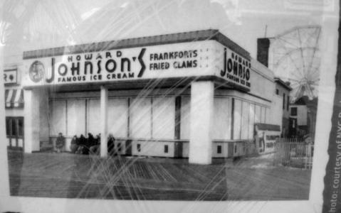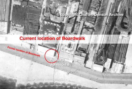 That building was on the Ward property at the corner of Jones Walk at the Boardwalk. It was demolished when the Boardwalk was moved inland in 1941. Here's an aerial view: Hope this helps.