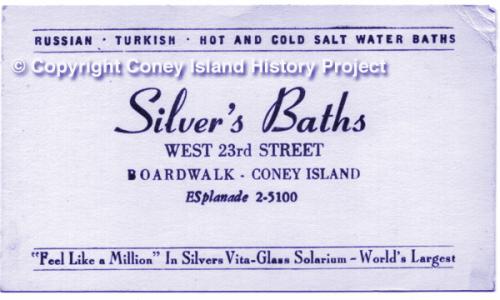 My father had a sign shop on 22nd Street and then on 22 and Surf Ave. He did all the signs for Silver's Bath until he was, health wise, to close shop. As a kid, I remember delivering signs to the bathhouse and was taken on a tour, since I never knew what was their business. As far as I was concerned, people when there just to take a bath! Oh well, those days are long gone. By the way, I remember as a toddler being taken to the roof of the building on 29th and Surf Ave where we lived to see the "great fire of 1932". There was a Nunnery between 27 & 28 St near the Boardwalk. We saw the nuns gathered and praying, I assume for the fire to stop. Guess what? The fire stopped at 27th Street.