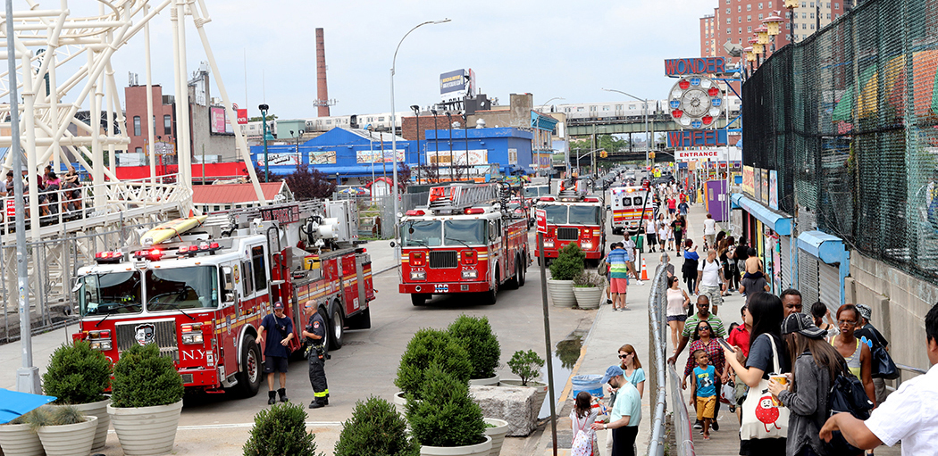 Lacking direct access, firefighters would be forced to drag hoses for long distances to battle a fire. Medical personnel would have to roll stretchers from gridlocked Surf Avenue to reach those in need of medical attention on the beach, Boardwalk, or rides. Ladder trucks would be unable to perform rescues should a ride break down.