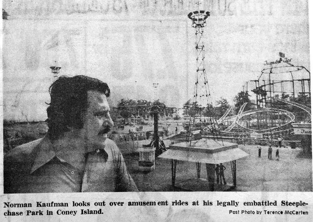 If you have fond memories of the batting cages on Stillwell Avenue, the International Speedway Go-Karts, the Jumbo Jet Roller Coaster, the Dragon's Cave on the Bowery, or the 1970s revived Steeplechase Park located on the site of the original, then you've had a taste of Norman Kaufman's Coney Island vision. He was known for his amusements, but his epic battle with Fred Trump was legendary.