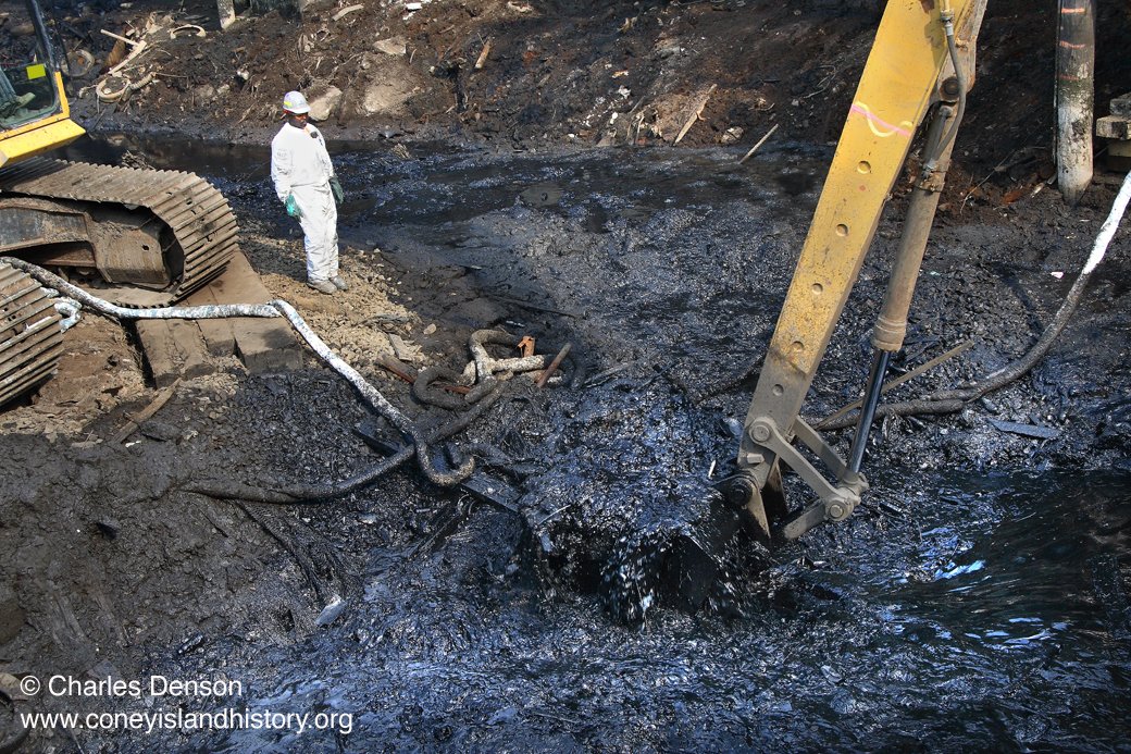 Toxic coal tar ("black mayonnaise") being removed from a small section of Coney Island Creek in 2006.