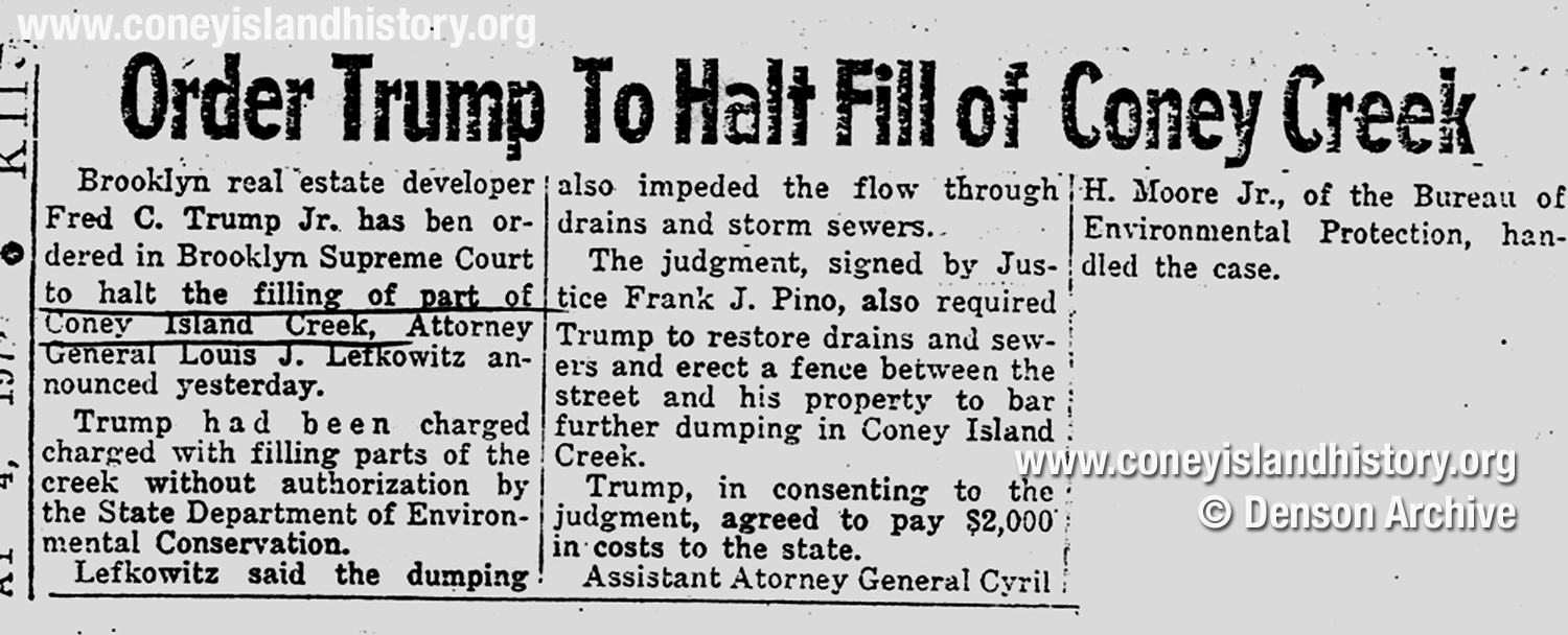 7. Fred Trump was fined for illegal filling of Coney Island Creek in relation to a concrete mixing facility.