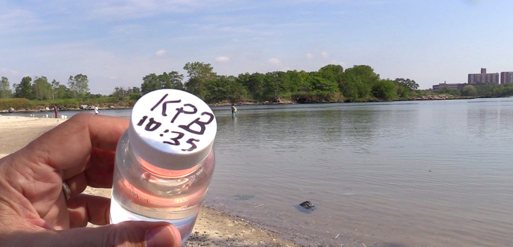 Water sample from Coney Island Creek for the Citizens Water Quality Testing Program of the Department of Earth and Environmental Sciences at Brooklyn College, September, 2016. Partnership for Parks, Coney Island Beautification Project, and the Coney Island History Project have been sampling.