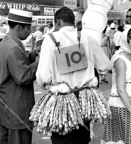 A balloon salesman on the corner of Stillwell Avenue and Surf Avenue, 1950s.