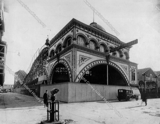 Also known as Trip to the Moon, "this coaster, which was built from a dentist's model and constructed by Feucht, had oversize dips when it opened on June 6, 1907. Despite its small coaster structure, 450 x 65 feet and a ride that lasted only 90 seconds, at 25 cents a person, it could gross $20,000 a season. It had four passenger toboggan like cars and some of the steepest drops of a coaster to that date."
