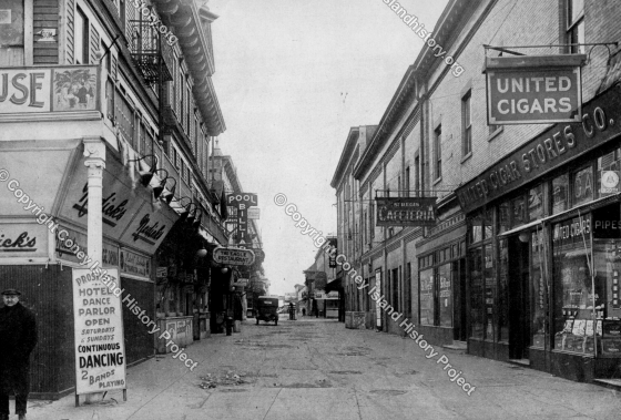 Photograph of Henderson's Walk includes Prospect Hotel, Nedick's, United Cigars and Stregis Cafeteria