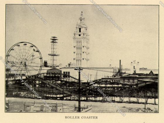 Page 20 (top) of the Glimpses of the New Coney Island book: Roller Coaster