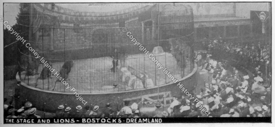 Photograph of the caged lion stage at Bostock's, Dreamland