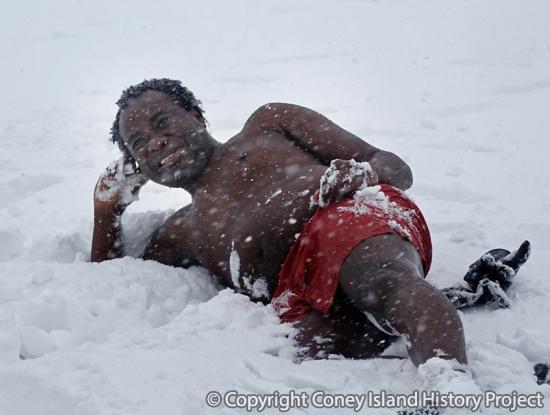 "Trust me, try it one day, you're going to like it," says Abiodun "Abi" Bello, who has been swimming in cold water as a member of the Coney Island Polar Bear Club since 2010. A native of Lagos, Nigeria, he first came to the U.S to study accounting at Howard University in D.C. After moving to New York City in 1988, he lived in Coney Island for two years but did not swim here until a running injury sent him in search of "the best therapy." He speaks enthusiastically about the health benefits of cold water swimming, the camaraderie of the club, being the last one out of the water, and conquering the elements.