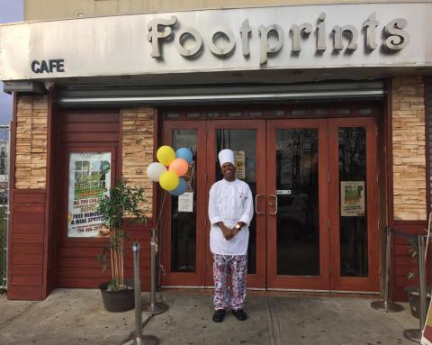 Basil Jones is the chef at Footprints Cafe in Coney Island, which specializes in Caribbean cuisine, and is the originator of their famed Rasta Pasta. Born in Kingston, Jamaica, and raised in St. Ann's Bay, Jones first learned to cook as a boy helping out in his grandmother's kitchen. At the age of 20, he took a job at a hotel restaurant where he learned to prepare French and Italian cuisine. Encouraged by food and beverage managers who recognized his talent, Jones helped to create unique dishes for Jamaica's 25th anniversary in 1987 and was awarded a certificate of excellence from the prime minister. A scholarship to culinary school in the U.S. soon followed and in 1995 he emigrated to New York to join his brother.