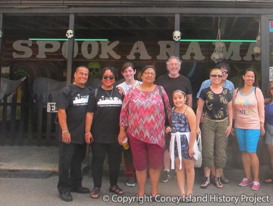 For Carmen Arcendiga, a trip to Coney Island with her granddaughter Zoe evokes memories of family picnics under the boardwalk, riding the Cyclone, and the Laughing Lady. They came to Coney Island after Carmen won an essay contest for a behind-the-scenes tour of the Spook-A-Rama dark ride at Deno's Wonder Wheel Park