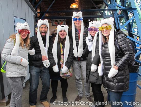 On January 1st, 2016, the Vourderis family opened Deno's Wonder Wheel on New Year's Day for the first time in the landmark's 95 year history. The Coney Island History Project was on hand to record New Year's greetings from the Wonder Wheel for our Oral History Archive. Interviewers Mark Markov and Samira Tazari were stationed at the entrance and exit of the Wheel to record New Year's greetings in several languages and Coney Island memories. The historic event drew guests from all over the world, including France, Switzerland, Sweden, Portugal, Russia, Taiwan, Australia and Canada, as well as Brooklyn, Manhattan, Queens, Long Island, and New Jersey. Some riders had also come to Coney Island to join the New Year's Day Polar Bear Plunge,
