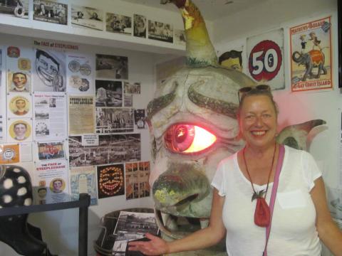 Hawley Hussey recounts "getting in the Gate," moving to a beach mansion in Sea Gate in 2001, her Coney Island-inspired art and writings, and swimming year-round. A member of the Coney Island Polar Bear Club as well as an ephemeral upstart group called the Penguins, Hawley currently swims daily in the ocean off Sea Gate on her own or with friends at sunset. Among the art and literary projects she talks about are painting a memorial portrait of "Master" (Genaoro Venegas Rivera ) for Ruby's Bar and "The World-Famous Coney Island Break-Up Letters" (2010) and All the Old Romance Retold Exactly the Ancient Way , a collage-novel based on Robert Louis Stevenson's Treasure Island (2018).