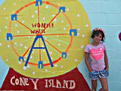 Lola Glass, whose artistic name is Lola the Illustrator, talks about her new mural at Coney Island's Deno's Wonder Wheel Park. Called "Coney Wonders," the mural depicts a snow globe of the Wonder Wheel flanked by two mermaids. The nine-year-old Brooklyn resident says she began painting murals at age six as a member of the Bushwick Collective and the Coney Island wall is her sixth and largest mural.
