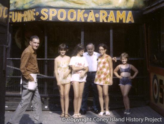 Patricia Casola shares memories of growing up in Coney Island in the 1950s and '60s as the daughter of artist Dan Casola (1902-1990). She recalls her father as a "tinkerer" and "a self-taught individual" who learned by doing. Among his clients were Freddie Garms, the owner of the Wonder Wheel and Spook-A-Rama, and Lillie Santangelo of the World in Wax Musee. The Casola family lived at 2856 Stillwell Avenue in a house rented from Santangelo where the artist had an upstairs and a downstairs workshop and also worked in the yard. There was also a secret studio behind Spook-A-Rama, where Patricia and her brother Wesley would bring him dinner.