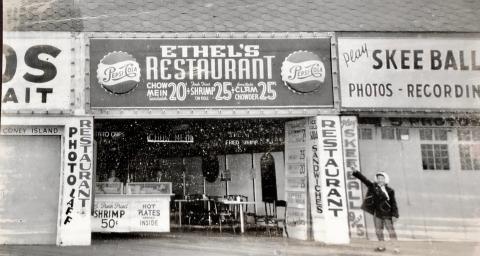 Born in 1947, Sharon Tera lived in Coney Island for the first 14 years of her life. Her parents, Ethel and Ise Tera, owned Ethel's Restaurant on the Boardwalk at West 19th Street. "Between my mother being Jewish and my father Japanese, we had a combination of that kind of food," Tera says. "So we had chicken noodle soup, we had clam chowder. Or you could just get fried shrimp in a hot dog bun." Tera shares childhood memories of mastering Skee-Ball at arcades run by the Fox family and the Nishizaka family, learning to develop photos at the photo studio next door, and having free run of Washington Baths and Steeplechase Park.
