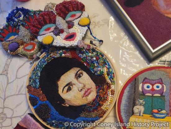 "I could tell I'm a Coney Islander now because I really love this neighborhood," says Sofya Dudnik, an artist who emigrated from Moscow as a student in 2010. "I think it's one of the rare gems in the city and maybe in the whole United States. It's like a historical landmark for me." After studying art at FIT, she created a motif called "Sofi Girl," which the artist says is "a mini-me" and appears in many of her paintings, embroideries, jewelry, and other artwork. In her oral history interview, Dudnik talks about her childhood diaries, what inspires her to create art, and Coney Island.