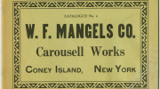 28 page catalogue from the W.F. Mangels Carousell Works showing their range of products, including carousels, carved horses, band organs, Whips, shooting ranges and vending ovens.