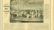 Dimensions: Diameter of platform, 36 feet; in 16 sections, each 2 horses abreast; 28 galloping horses, 2 double-seated chariots. Total seating capacity, 36...