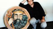 Charles Denson with the Neptune medallion on the day he donated it to the Brooklyn Museum in 1981.