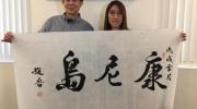 The calligraphy reads from left to right- "Kang Ni Dao" - Chinese for Coney Island. Photo of Lu Zhao and Sylvia Ching Man Wong for the Coney Island History Project.